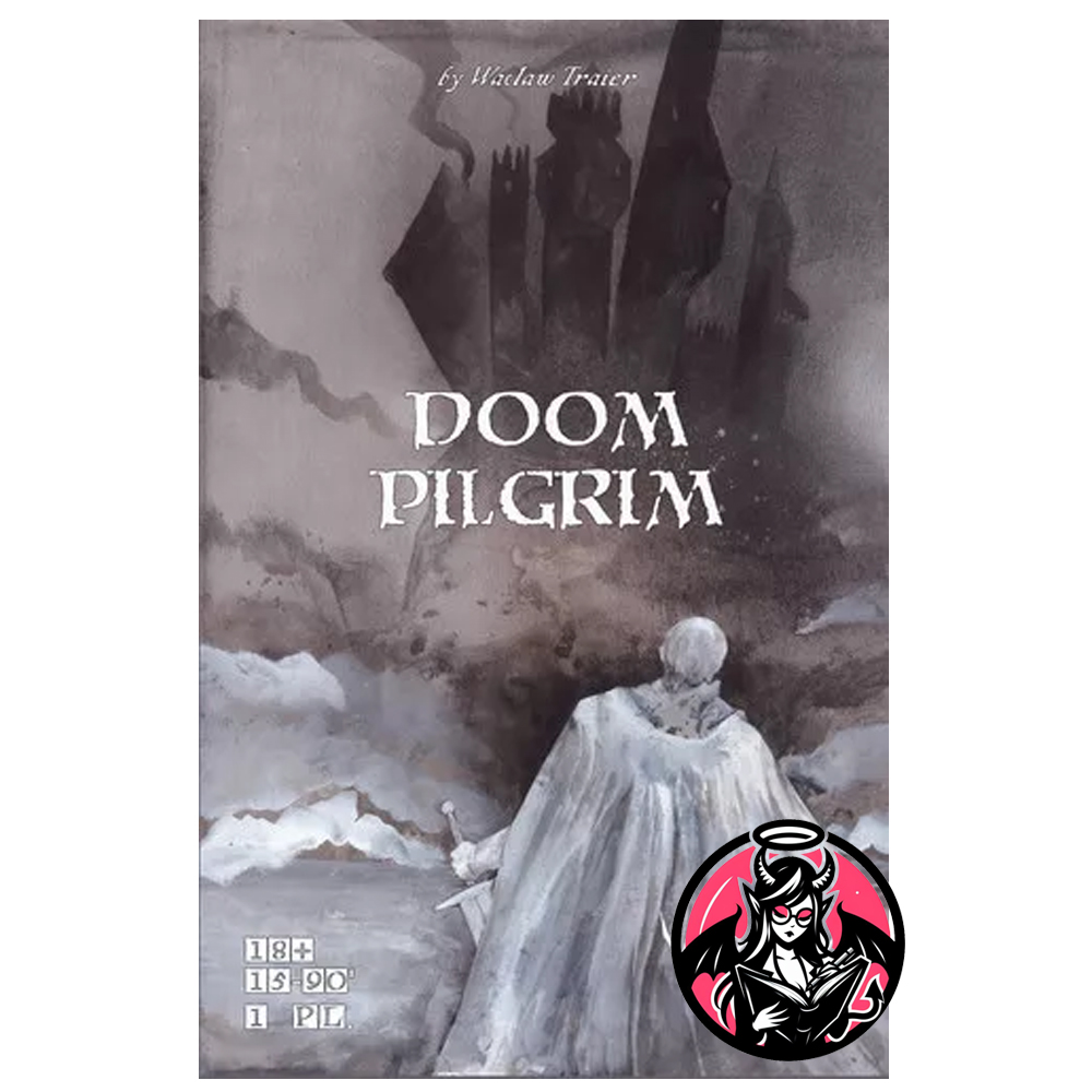Doom Pilgrim viene impreso a todo color en caja con tapa y fondo de cartón compacto. Cuenta con un libreto de reglas de cuatro páginas que incluye la hoja de personaje, además de 90 cartas en formato 95 x 130 mm de 300 gr con acabado barniz SUN. ¡Menudo lujo!